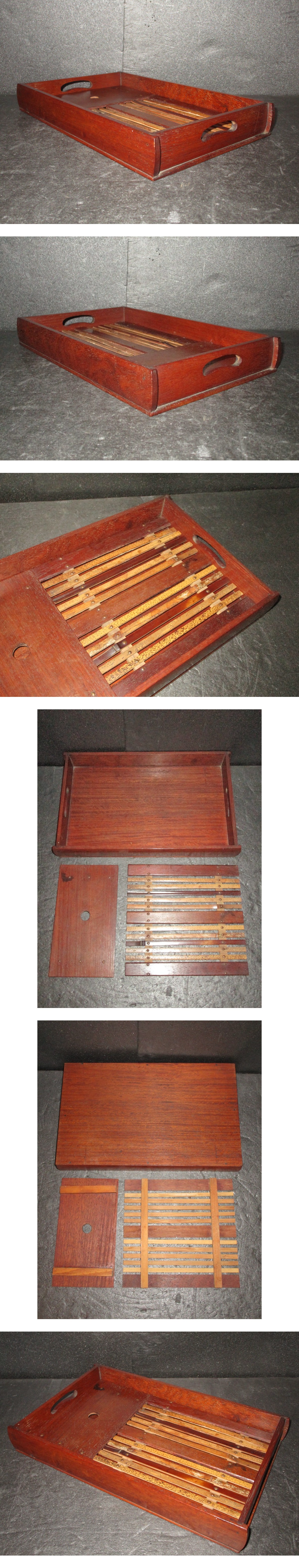 - 【煎茶道具】古い 木製(唐木)+竹製(胡麻竹) 四方式 煎茶盆 (幅31.2㎝)(奥行19.2㎝) /中国唐物中国美術