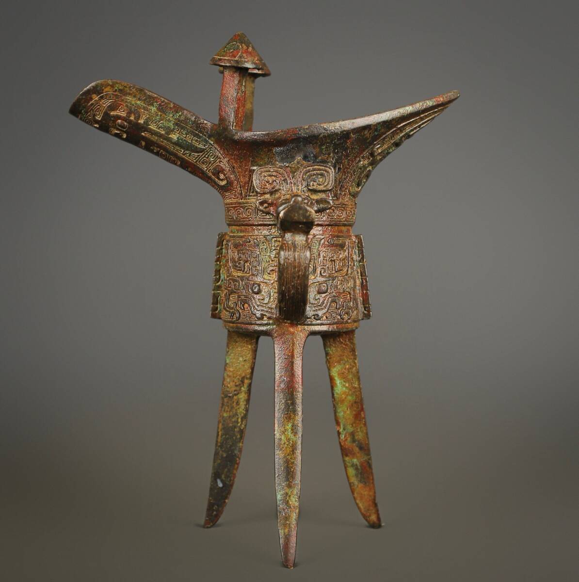 - 蔵友旧蔵出 西周 青銅作 精工 三足 獣面龍爵杯 希少珍品 貴重品 置物 古賞物 中国古玩 中国古美術品 館蔵品