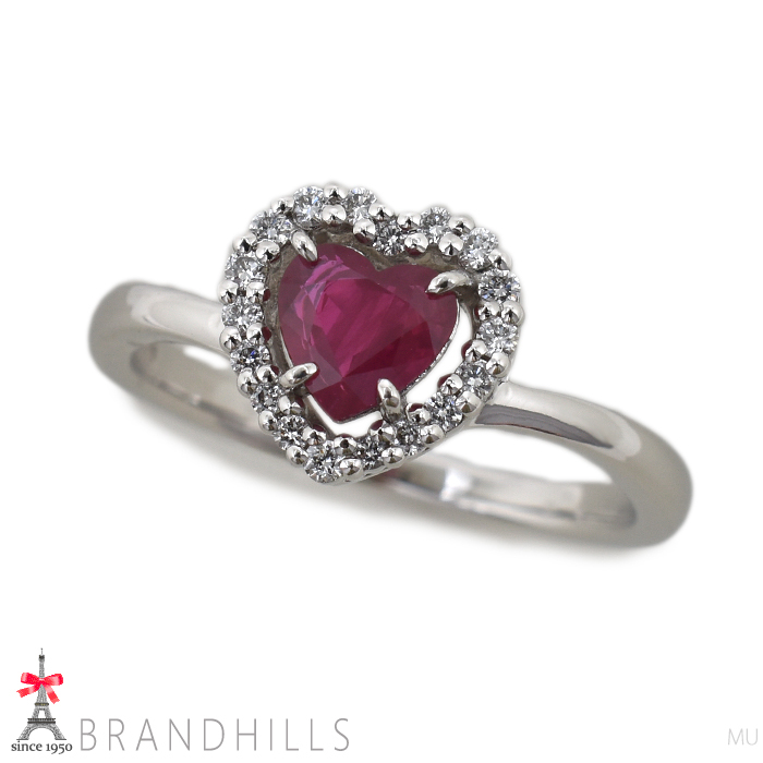 - 4℃ ヨンドシー ハートシェイプカットルビー ダイヤモンド リング PT950 プラチナ ハートモチーフ 指輪 #9.5 美品