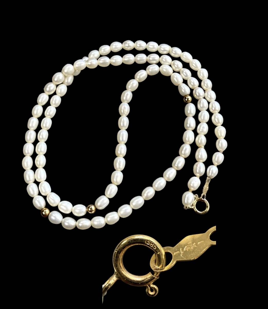 > 【偲】■極美品■14k 585 金 真珠 ネックレス ペンダント 首飾り アクセサリー長約21cm 重約7.24g y-638