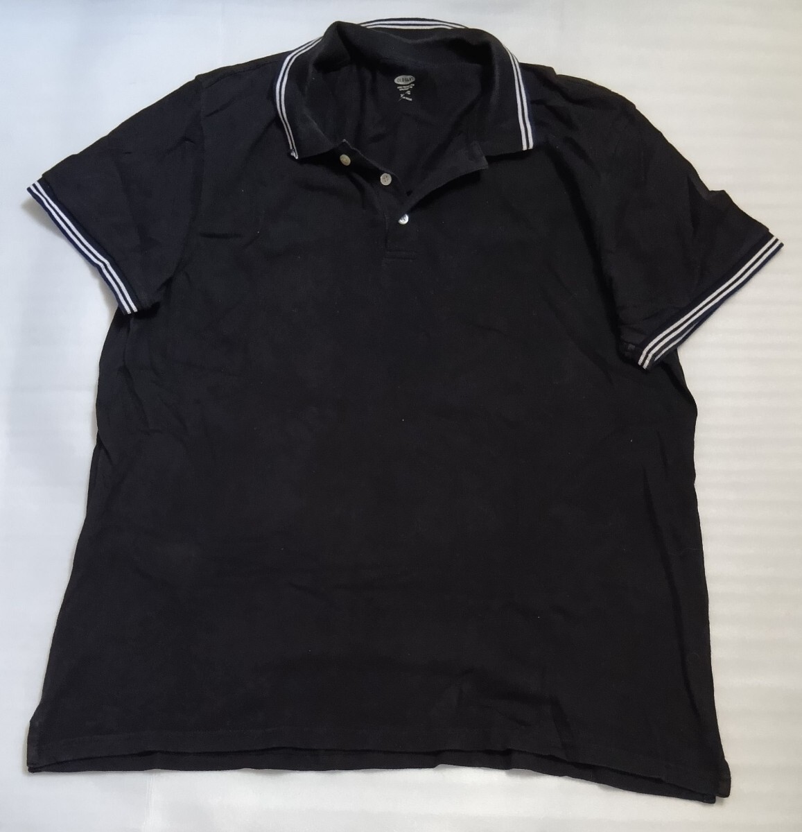> ☆米国ギャップGAPグループ OLD NAVY サイズXL襟付ポロ2つボタン半袖シャツ黒色ブラック襟/袖ホワイト白LINE無地 洗濯済 オールド ネイビー