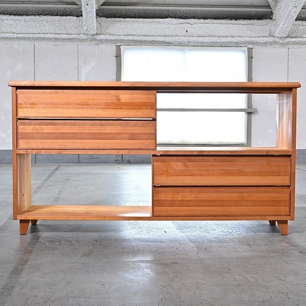 - 北欧スタイル サイドボード 無垢材 オープン リビング収納 引き出し ドロワー 抽斗 ディスプレイ 飾り棚 シェルフ 欅 キャビネット