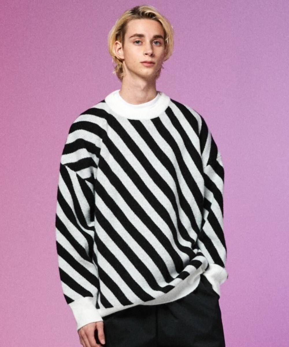 - rehacer オーバーサイズ ワイドストライプ ボーダー ニット ブラック ホワイト monkey time shareef lad musician wizzard 00-61