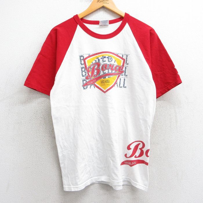 > M/古着 半袖 ビンテージ Tシャツ メンズ 00s Bora マサトラン ラグラン ツートンカラー クルーネック 白他 ホワイト 25may07