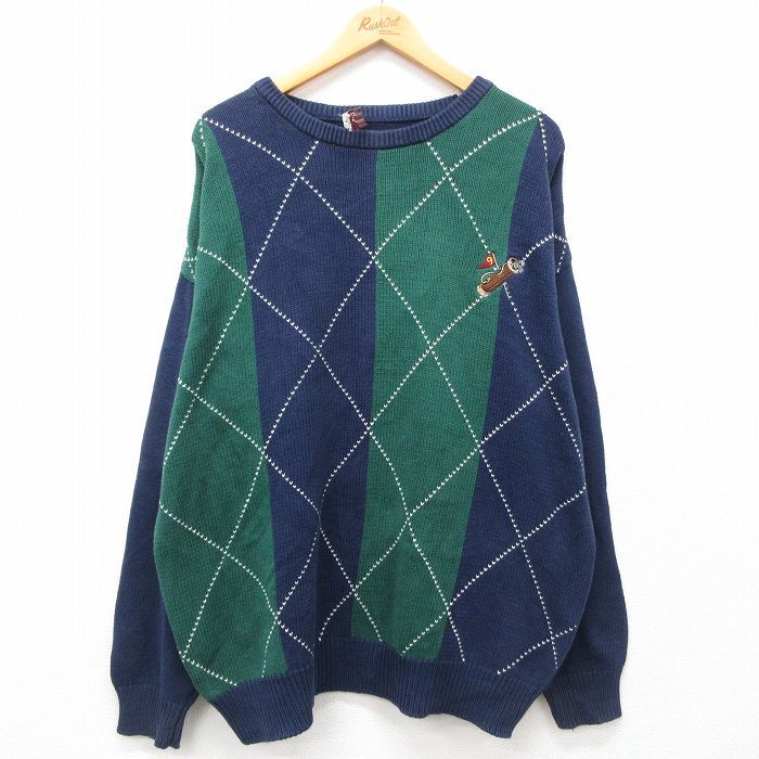 > XL/古着 長袖 セーター メンズ 00s ゴルフ バーズアイ 大きいサイズ コットン クルーネック 濃紺他 ネイビー 24oct11 中古
