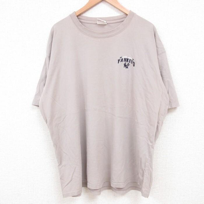 > XL/古着 半袖 ビンテージ Tシャツ メンズ 00s MLB ニューヨークヤンキース 大きいサイズ クルーネック 薄グレー メジャーリ