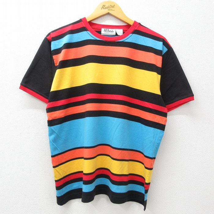 > L/古着 半袖 ビンテージ Tシャツ メンズ 00s マルチカラー クルーネック 黄他 イエロー ボーダー spe 24may31 中古