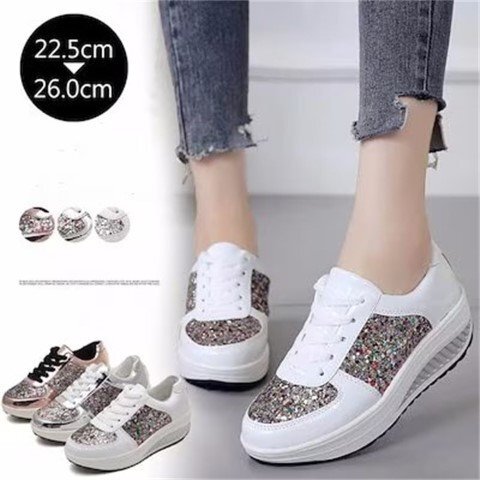 - スニーカー スパンコール シューズ 歩きやすい 超軽量 ラウンドトゥ レディースシューズ 運動靴 【40】25cm シルバー