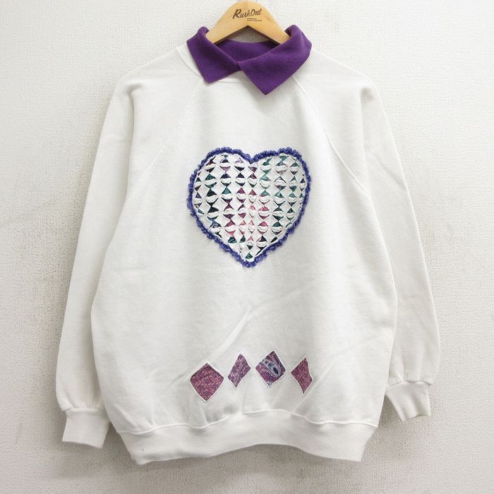 - 古着 ヘインズ 長袖 スウェット レディース 90s ハート 襟付き ラグラン 白 ホワイト 24may28 中古 スエット トレーナー ト