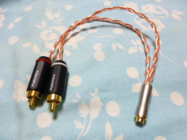 - 2.5mm4極 (メス) → RCA ×2 変換ケーブル オーグライン +pt 撚り線 + ALO SXC Cryo 24awg 八芯 20cm FURUTECH FP-126(G) 高品質 3.5mm3極