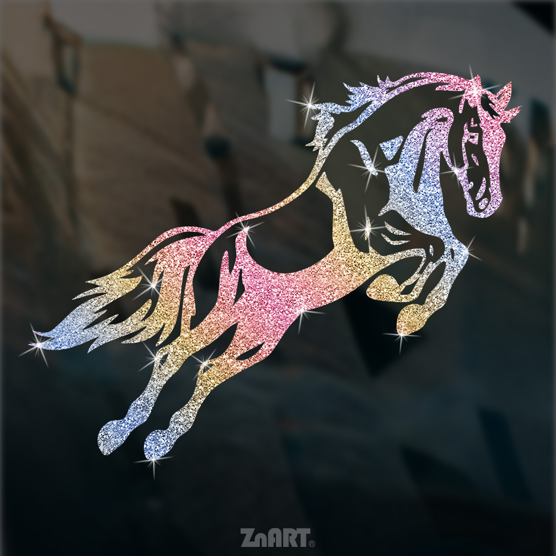 - ステッカー 走るウマ 車用 15cm カラフル キラキラ 馬 ノートパソコン 防水 ビニール シール 2D バイク 窓用 オートバイ インテリア t8589