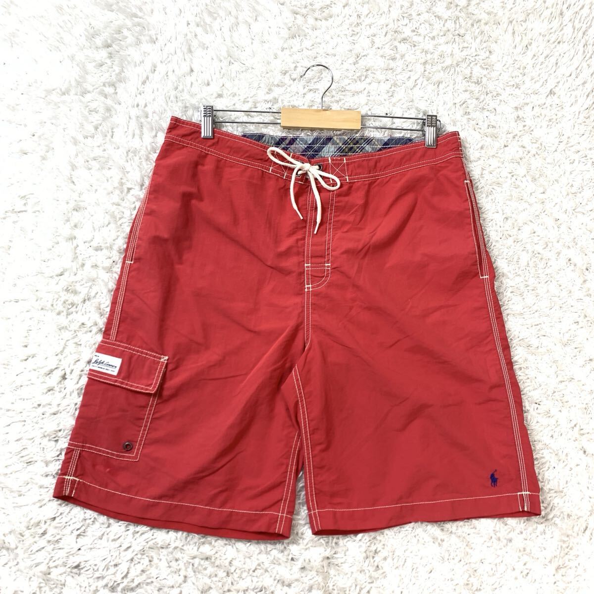 - POLOby Ralph Lauren ポロバイラルフローレン 半ズボン ハーフパンツ 短パン 水着 ナイロン 裏地メッシュ 赤 レッド M YA148