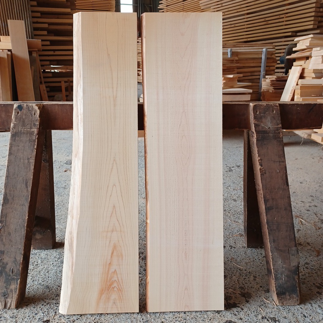 - A-2321 国産ひのき 片耳付板 2枚セット 棚板 看板 まな板 一枚板 無垢材 桧 檜 DIY
