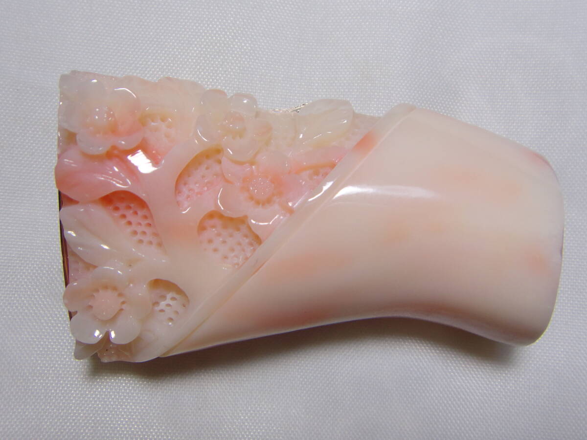 - 本珊瑚 本サンゴ さんご 帯留め ブローチ 兼用 Bigサイズ 枝 お花 彫刻 レトロ アンティーク ヴィンテージ Y785