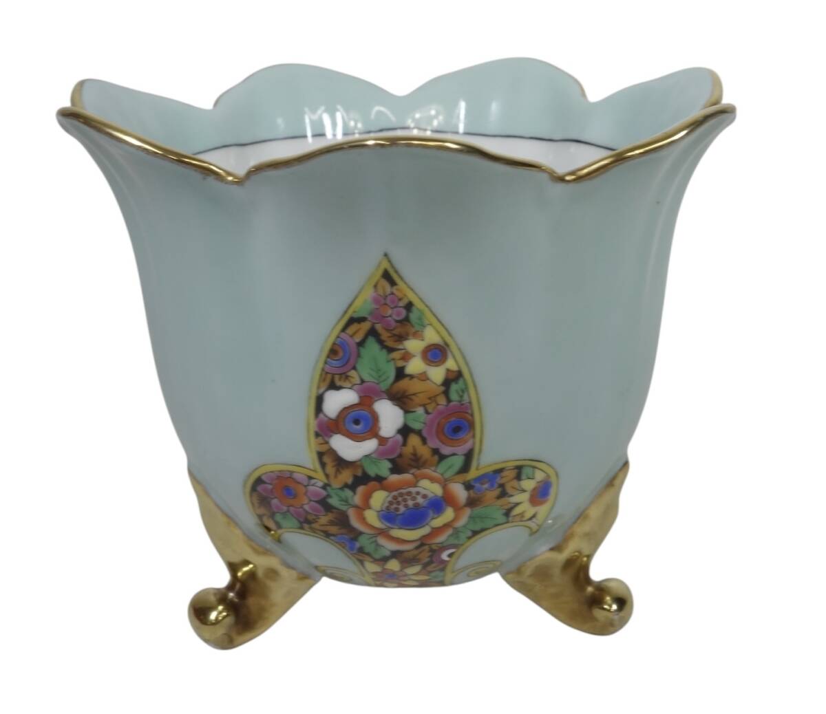 - 昭和初期ビンテージ オールドノリタケ Noritake-M印 MADE IN JAPAN ハンドペイント 三脚鉢 金彩 花文様 陶器 1918〜1920年代 HKE709(追加)