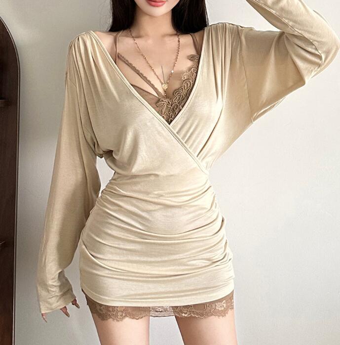 - M0917 ワンピースレディース●着心地抜群 20代30代40代 ● 大活躍 長袖 タイト white