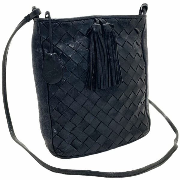 - 15655 イビサ ショルダーバッグ 編み込み レザー ミニショルダーバッグ 革 ブラック 黒 IBIZA タッセル
