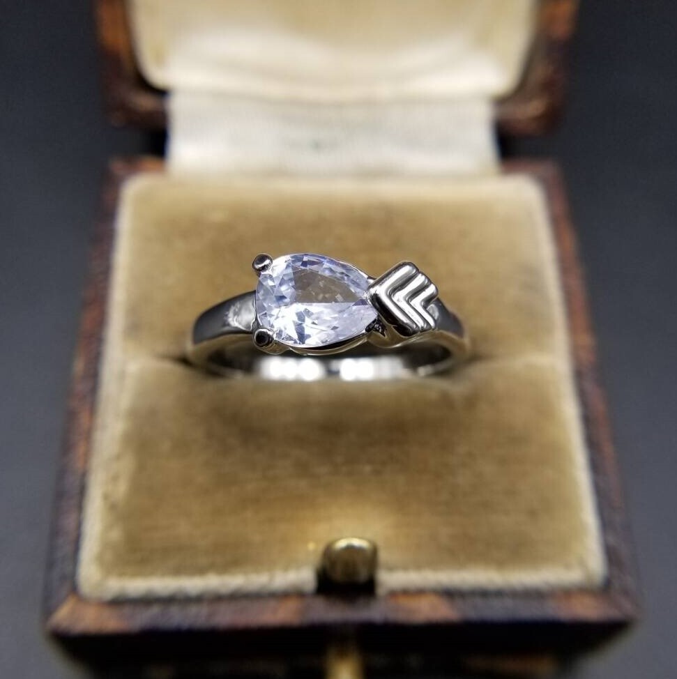 - クリアラインストーン ペアシェイプ ファセット ヴィンテージ リング シルバートーン 指輪 上品 エレガント ファッションジュエリー Y24-N
