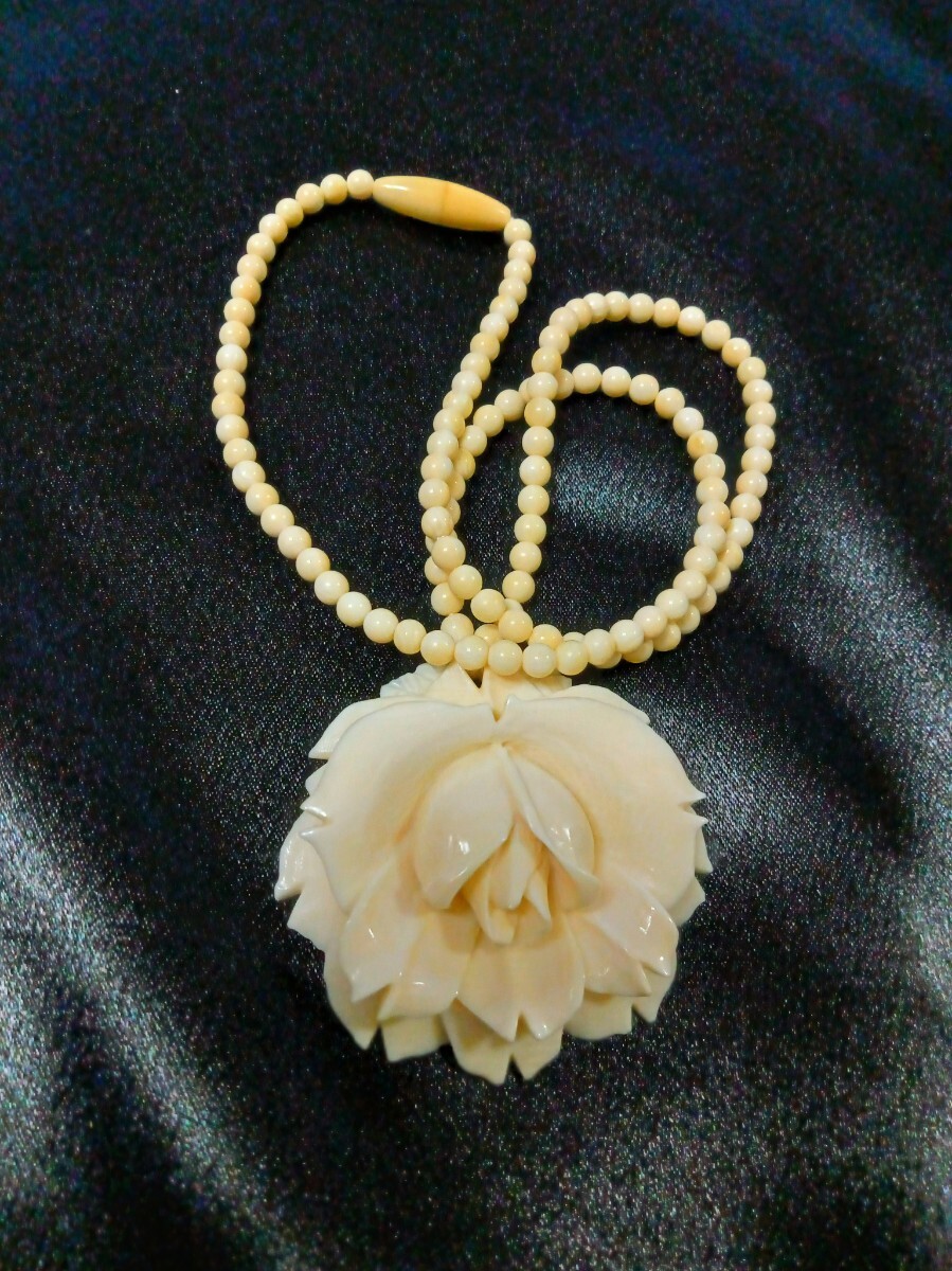 - 鯨歯 ネックレス 花 アクセサリー ネックレス ビンテージ 素敵なデザインです