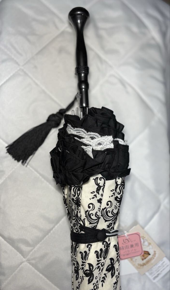 > 晴雨兼用 雨傘 日傘 ホワイト レース フリル アラベスク パゴダ パラソル アンブレラ タッセル付 木製 婦人傘 レディース UVカット 上質