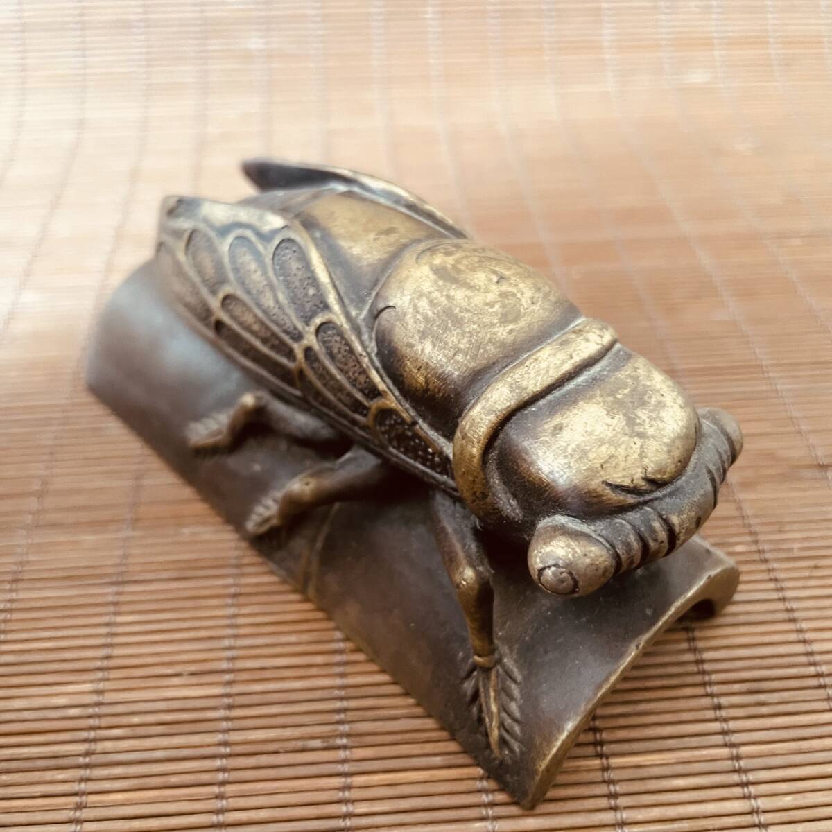 - £‰ 美術品 ‰£ 文房具 貴重希少 紫銅製 蝉 文鎮 鎮紙 置物