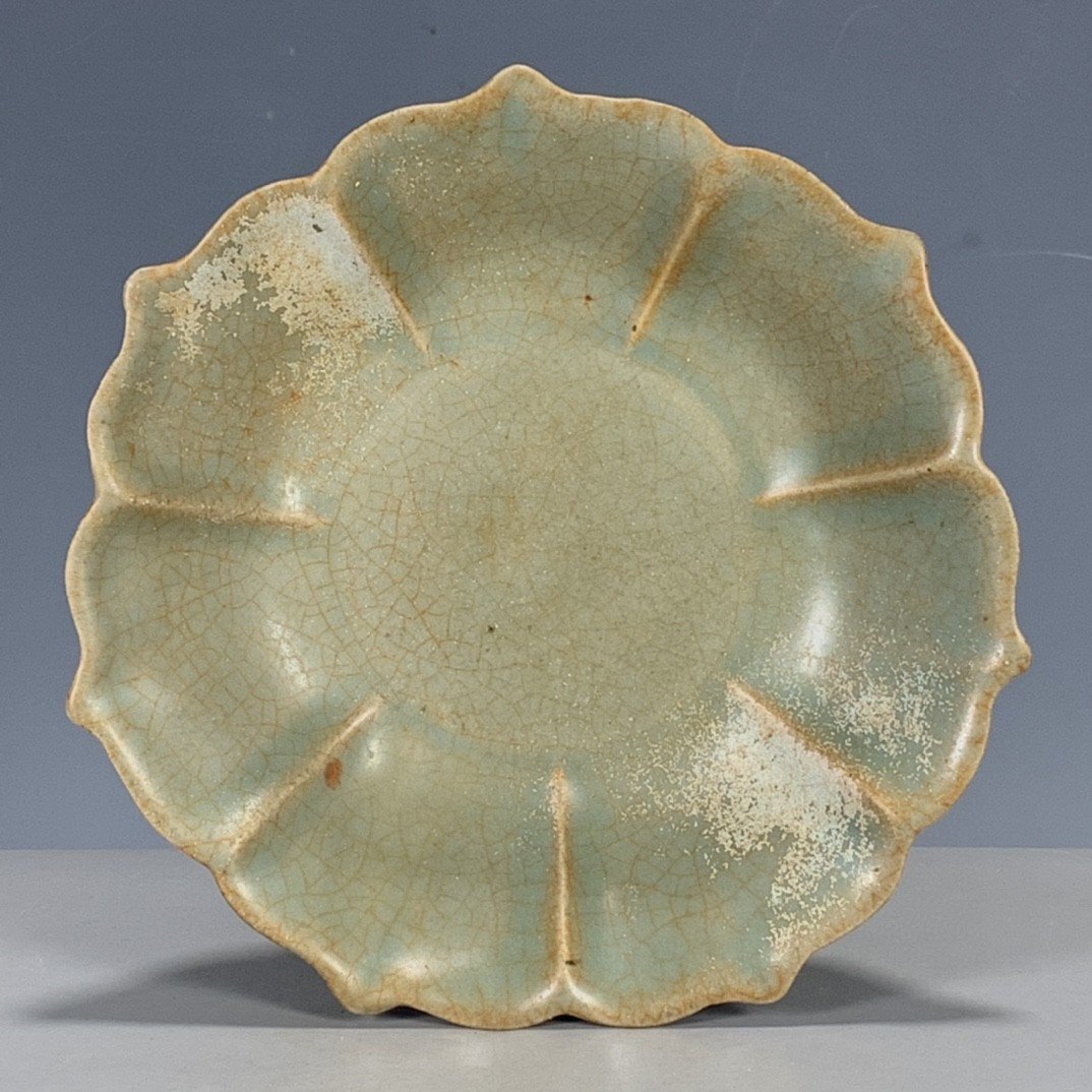 - 極美品 ! お皿 観賞皿 スタンド付き 菊 花柄 観賞 磁器 宋汝磁 石灰化花弁 花口洗皿 装飾 中国陶磁 収蔵品 鑑賞 中国美術品収蔵 コレ