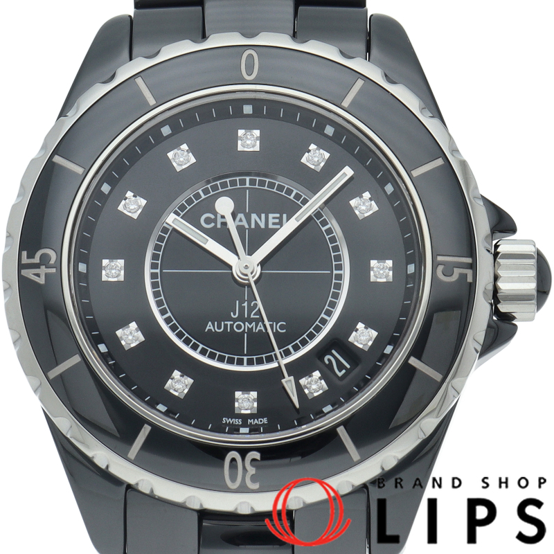 > シャネル J12 ウォッチ 38mm 12Pダイヤ オートマチック OH済 H1626 箱 保証書 セラミック メンズ時計 ブラッ