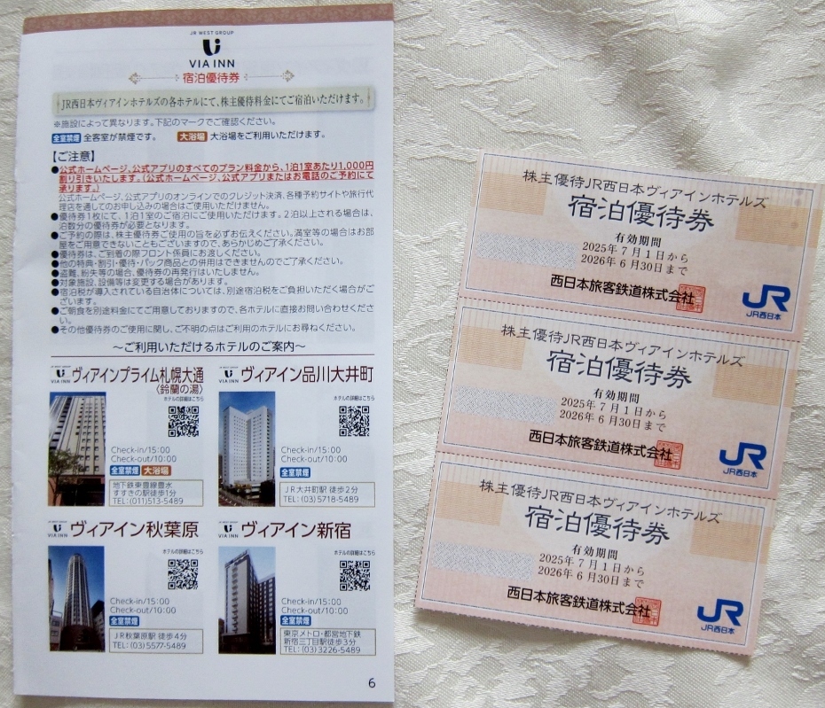 - 送料無料 JR西日本株主優待券 ヴィアインホテルズ 宿泊優待券 3枚 有効期限2026年6月30日