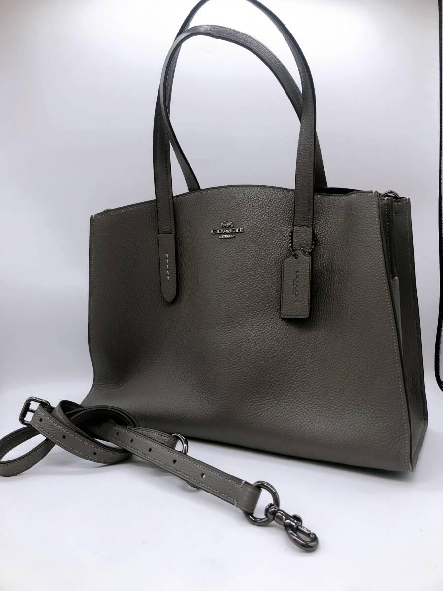 - 【29628】COACH コーチ 2WAYショルダー トートバッグ グレー ダークグレー 肩掛け 手持ち バック お出かけ 普段使い 通勤 ビジネス