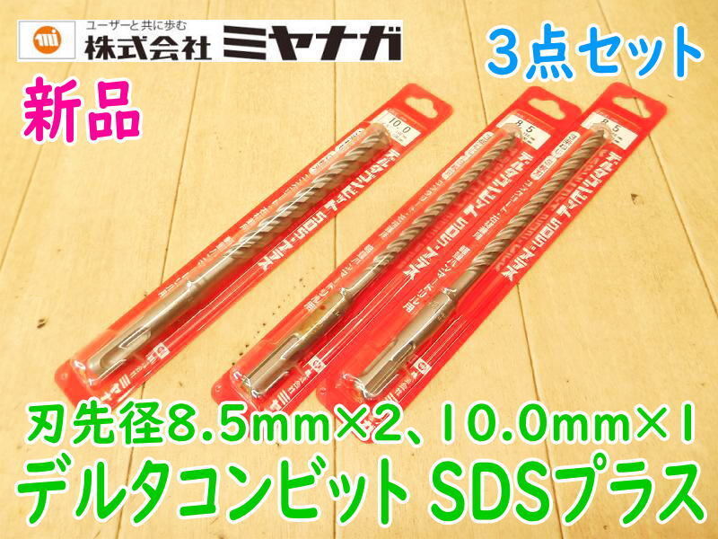 > ◆【新品・未使用】3点セット ミヤナガ デルタコンビット SDSプラス DLSDS085×2 DLSDS100×1 軽量ハンマードリル用 3条ねじ 3枚刃 穴あけ