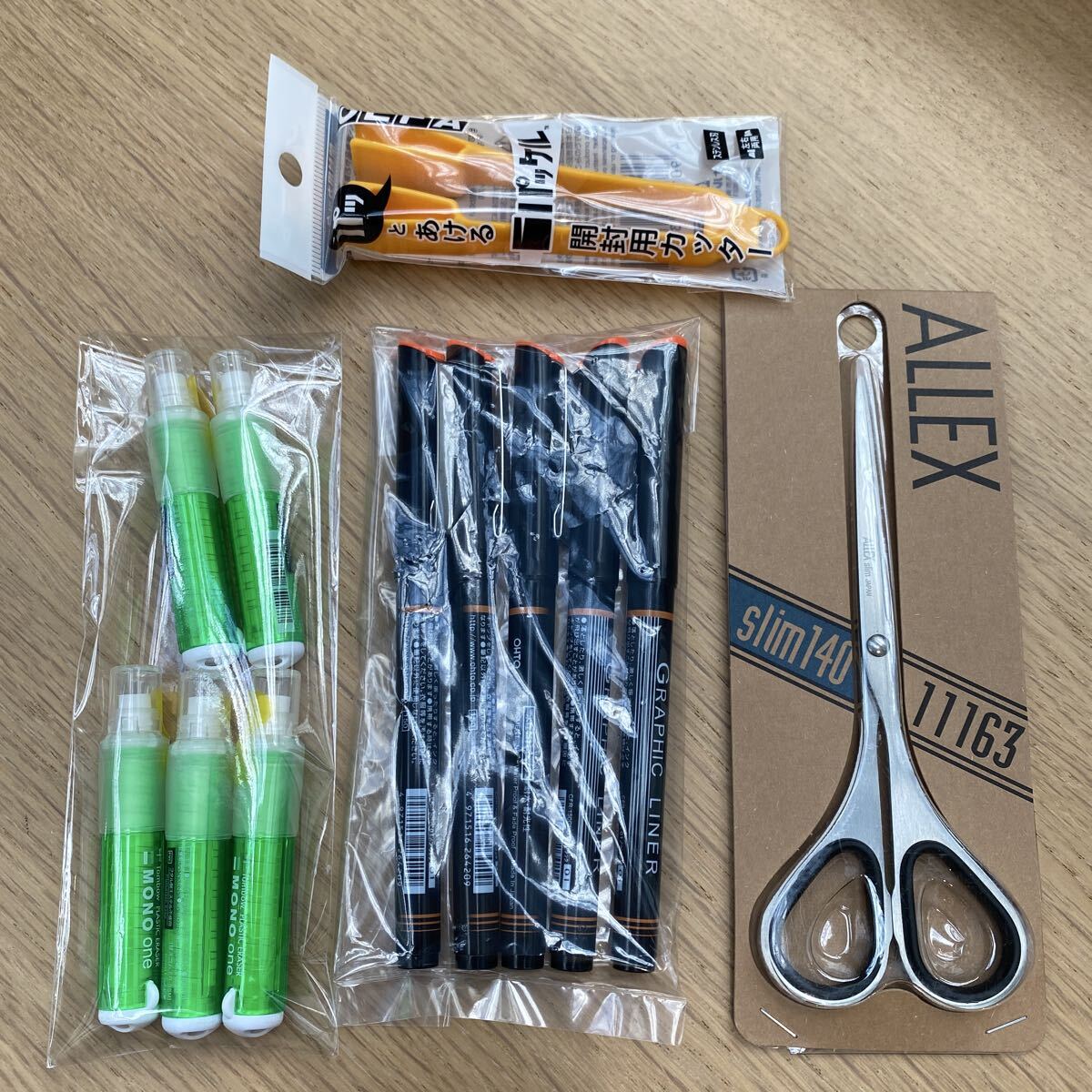> 【訳あり/未使用】ALLEX11163slim140+GRAPHIC LINER5本+MONO消しゴム5個+オルファ パッケル【ラスト4点セット】
