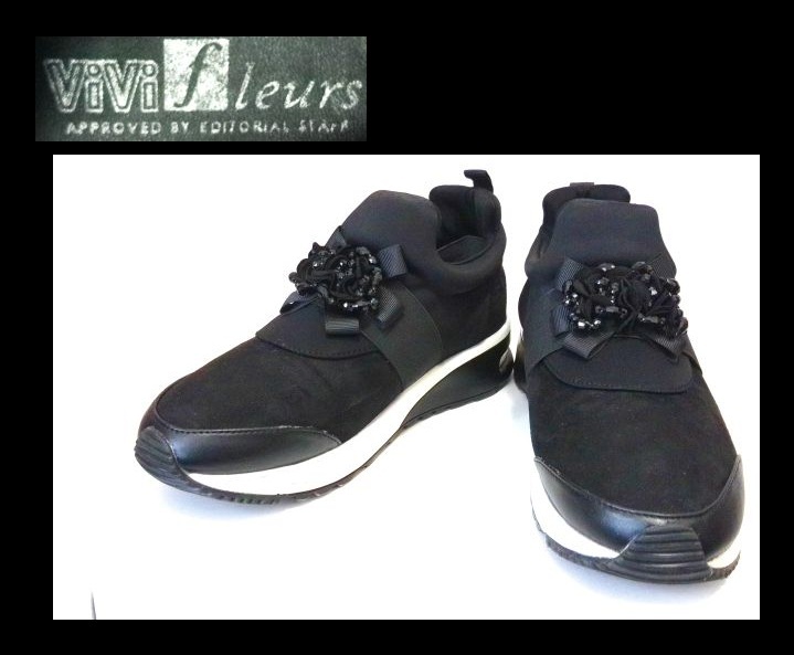 > 【001-95】ショップチャンネルViVIフルール★ビジュウアクセントエレガント見えインソールボアスリッポン/24㎝
