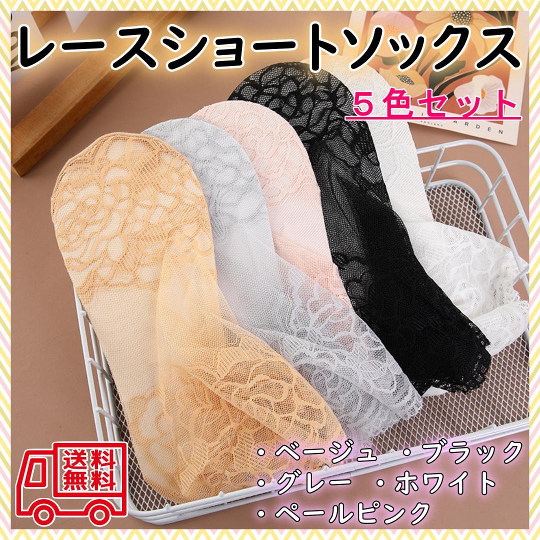- 5色セット レース ショートソックス エレガント シースルー 靴下 レディース