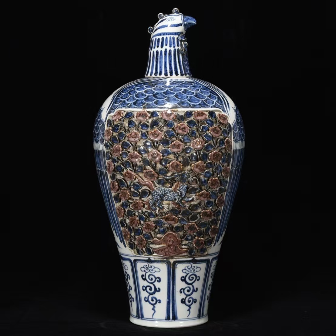 > 元時代 青花釉里紅摘花 鳳凰梅瓶・花瓶 秘蔵 52cm古陶磁器 陶芸 唐物 古賞物 時代物 骨董品 古置物 極細工 中国磁器 古美味 中国古玩921