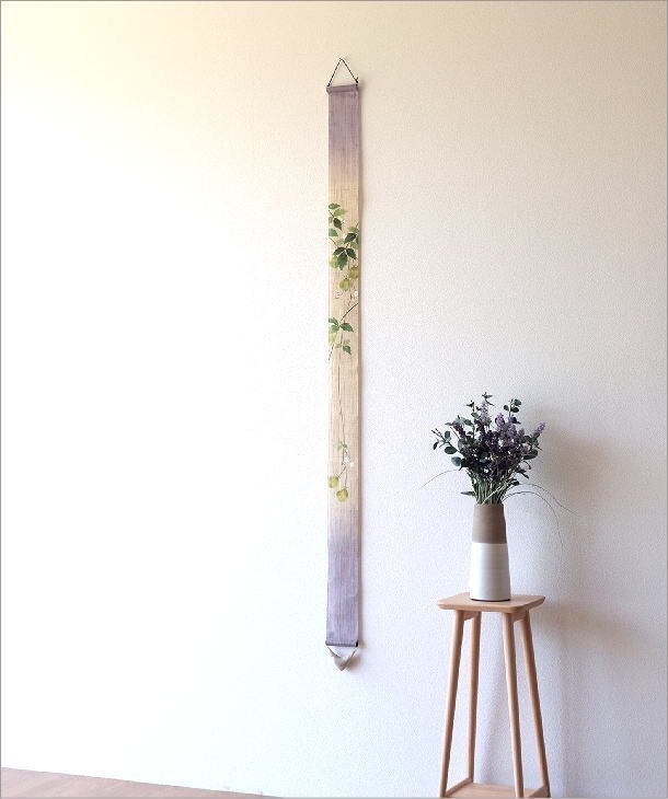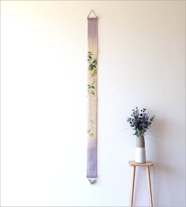 > タペストリー おしゃれ 壁掛け 和風 和モダン 麻 縦長 細長い 細タペストリー フウセンカズラ 送料無料(一部地域除く) wlj0658