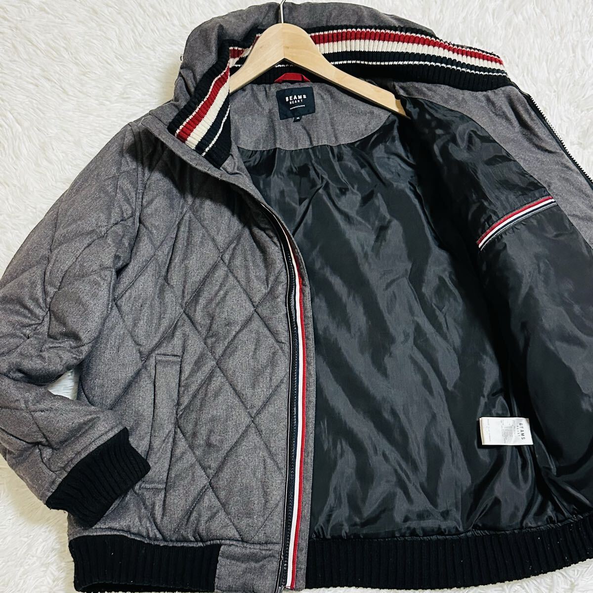 > XLサイズ ビームス キルティングジャケット コート ブルゾン トリコロール フード収納 中綿 Wジップ 秋冬 メンズ LL グレー BEAMS HEART