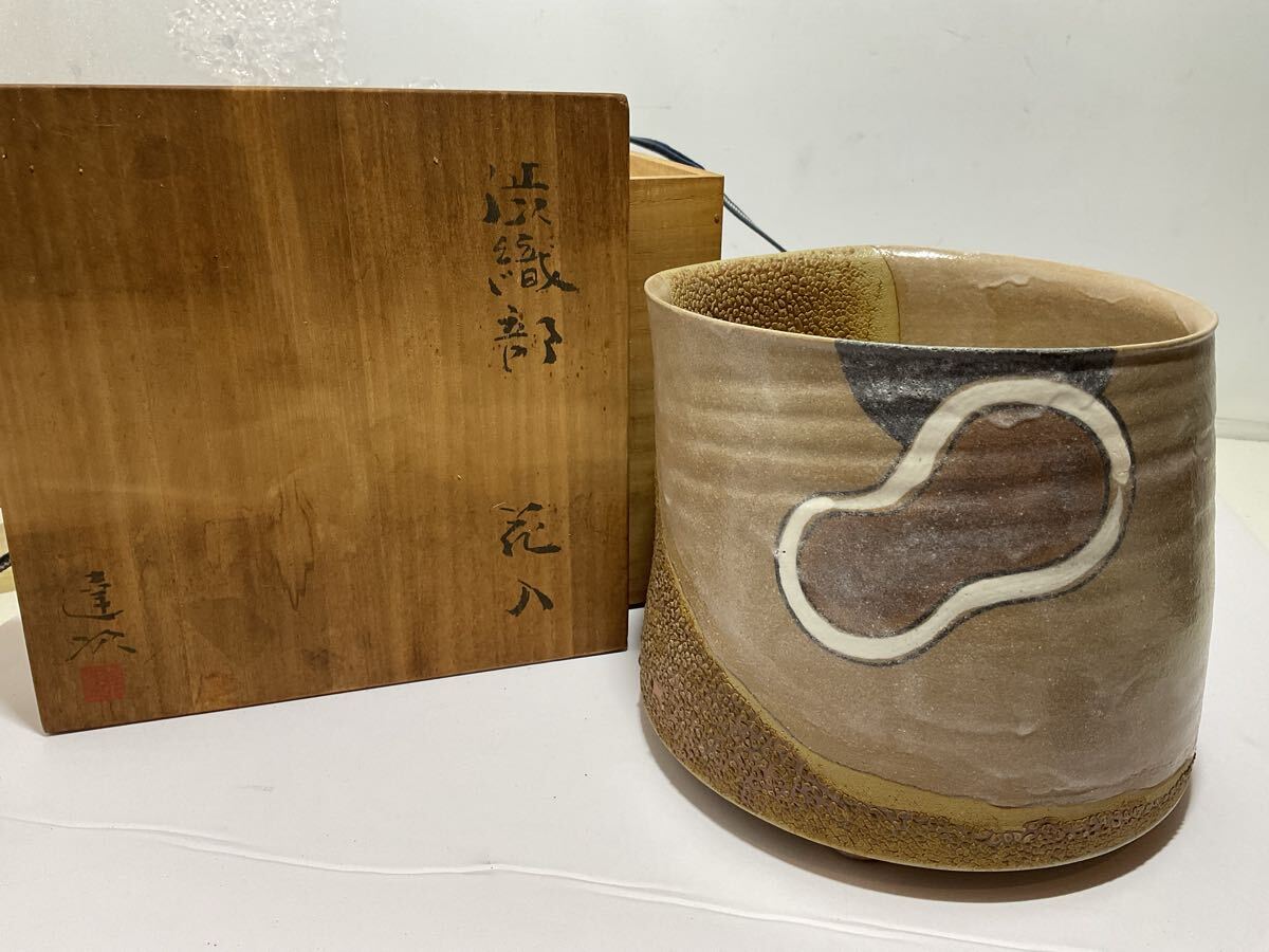 - 加藤達次造 渋織部 花入 茶道具 古陶磁 骨董品 在銘 瀬戸焼 現状品