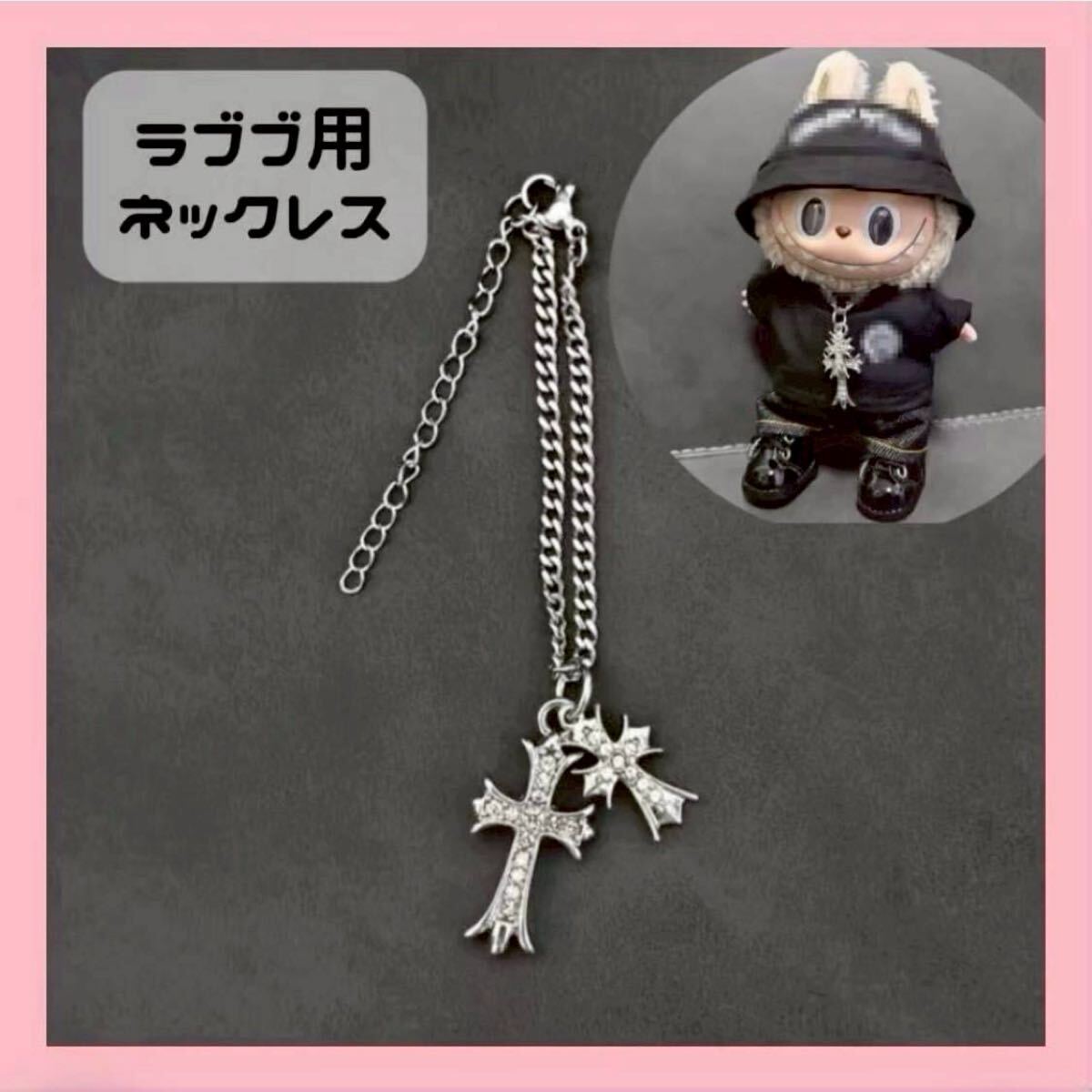 - ラブブ用 アクセサリー ネックレス クロス チェーン シルバー ぬいぐるみ用