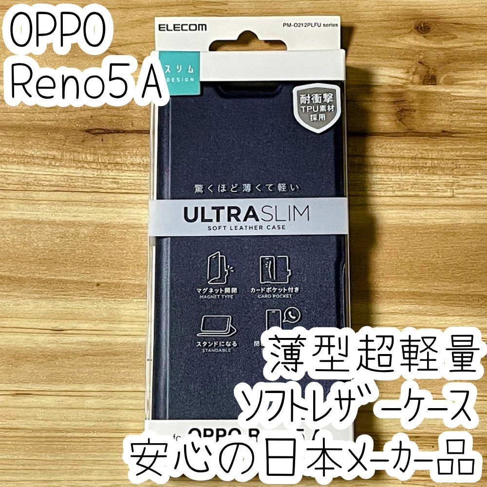 > エレコム OPPO Reno5 A 手帳型ケース 高級感のあるソフトレザー素材 カバー カード ネイビー 軽さを損ねない薄型・超軽量 磁石付 340