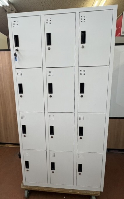 - 福岡発 ロッカー スチールロッカー 12人用 ホワイト 白 鍵付 3列4段 スチール製 収納 オフィス 事務所 会社 店舗 学校 業務