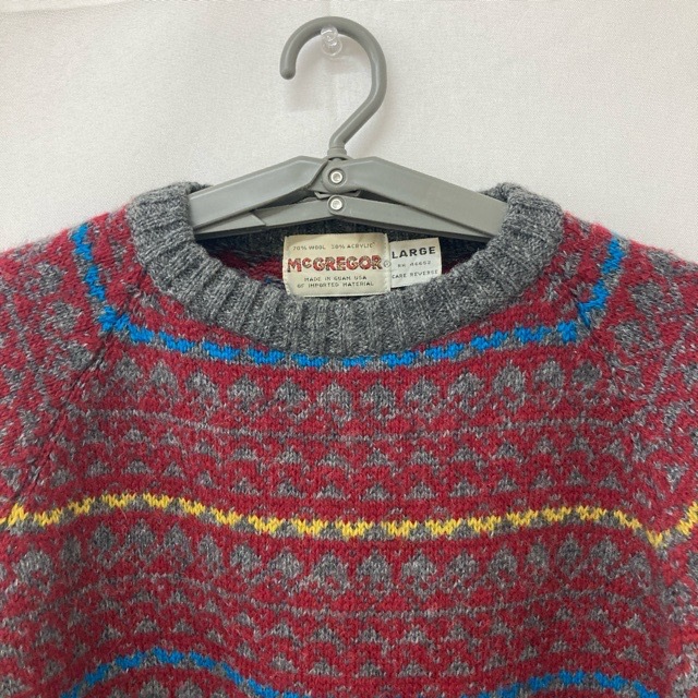 - A657 マクレガー L アメリカ古着 USA製 ウール アクリル混 長袖 ニット セーター グレー McGREGOR メンズ