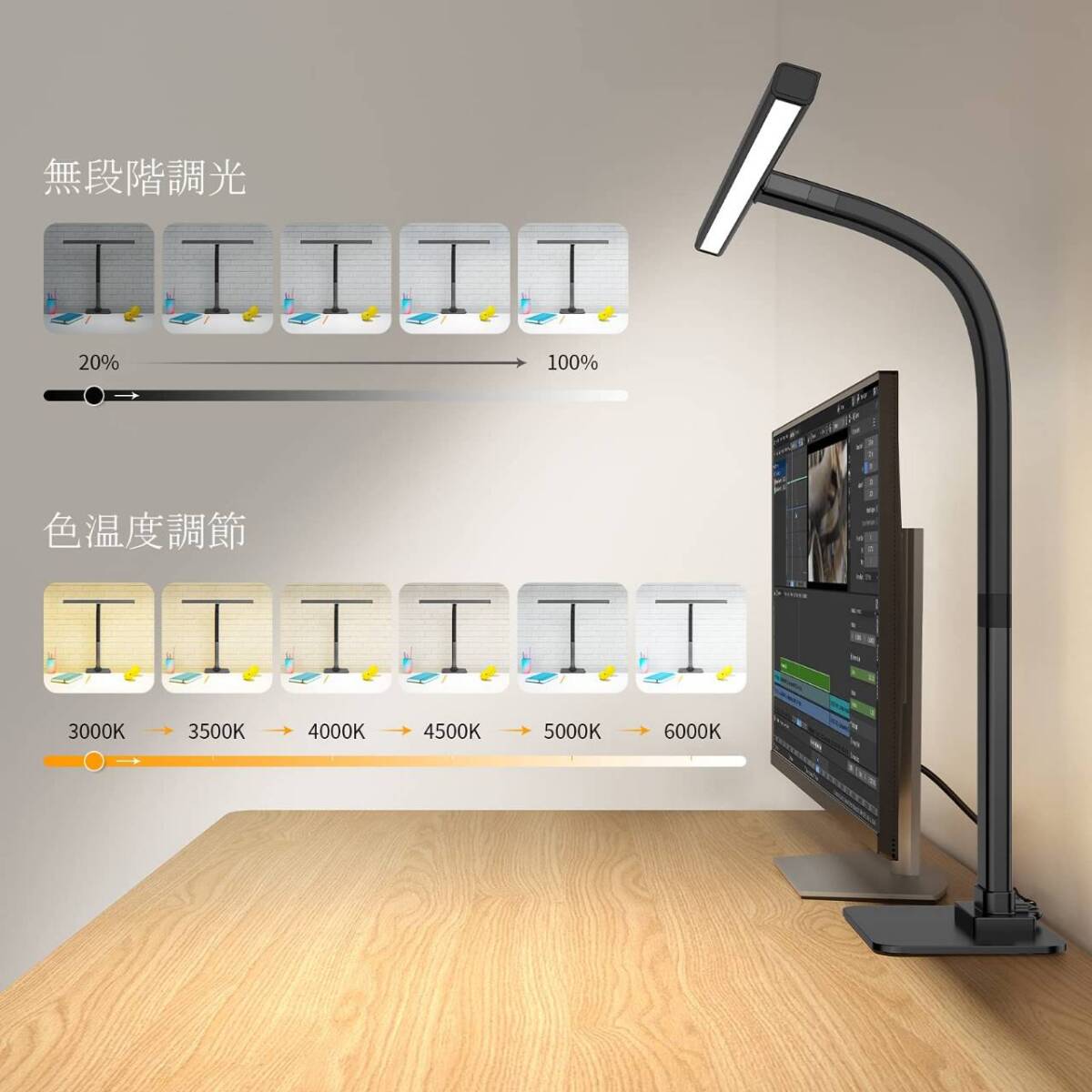 - ブラックの目に優しい卓上ライト