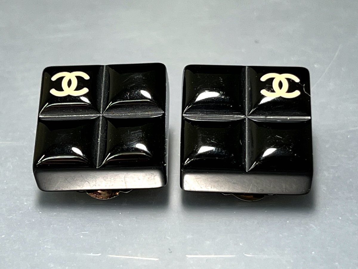 - CHANEL シャネル ココマーク 04A イヤリング スクエア ブラック