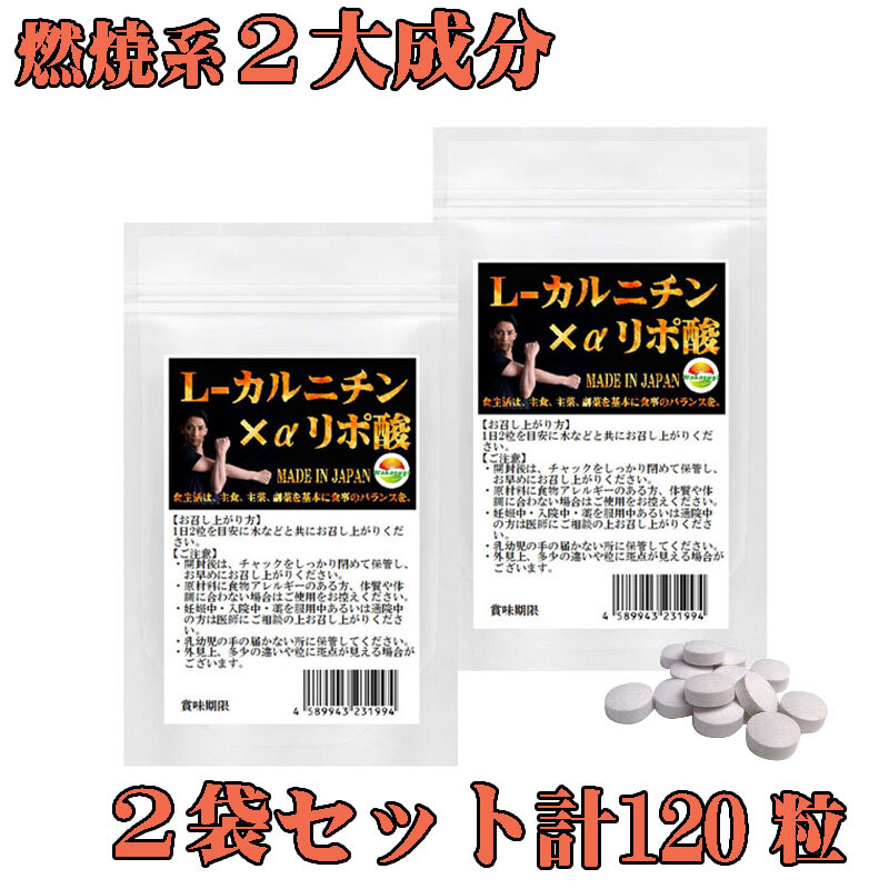 - L-カルニチン αリポ酸 サプリ 2袋セット計120粒 約2か月分 燃焼系 ダブル配合