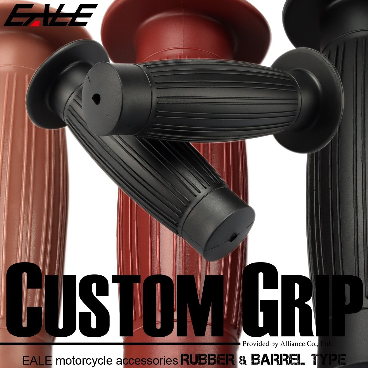 - バイク 樽型 グリップ ハンドル ラバー 生ゴム風 22.2mm用 非貫通 ブラック 左右セット カスタム ビンテージ アメリカン S-583-BK