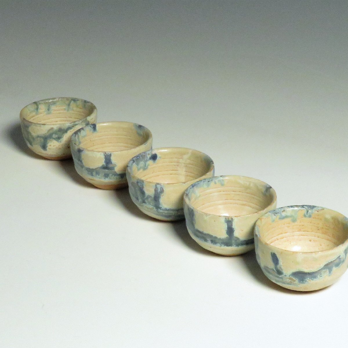 - ◆◇無銘 釉流文 茶杯 5客 酒盃/煎茶碗,抹茶注ぎ分けにも◇◆和食器 懐石 台湾茶 モダン茶道 dbsy10439-R