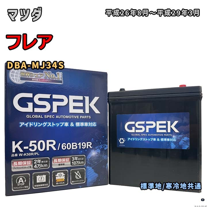> バッテリー GSPEK W-K50R/PL マツダ フレア DBA-MJ34S 平成26年8月~平成29年3月 対応 K-42R 互換 392