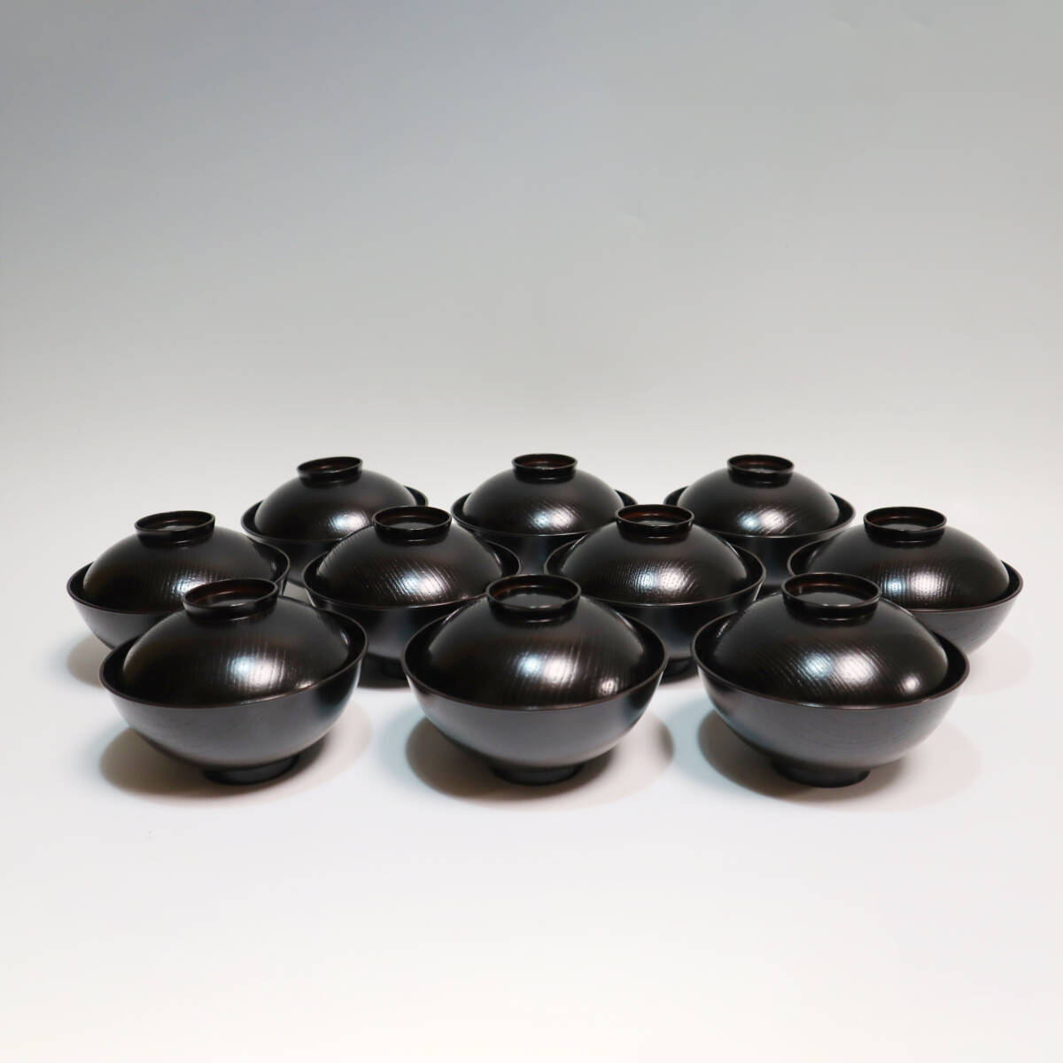 - 稲穂牡丹蒔絵 吸物椀 10客 箱有 うつわ/食器 UT092