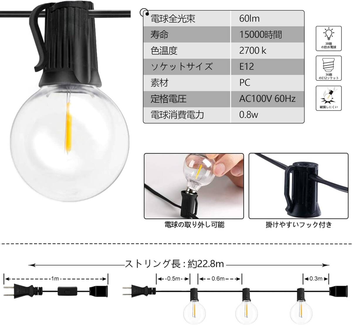- コンパクト 商品 ストリングライト 増篭コード付 22.8m 保護素材使用屋内外