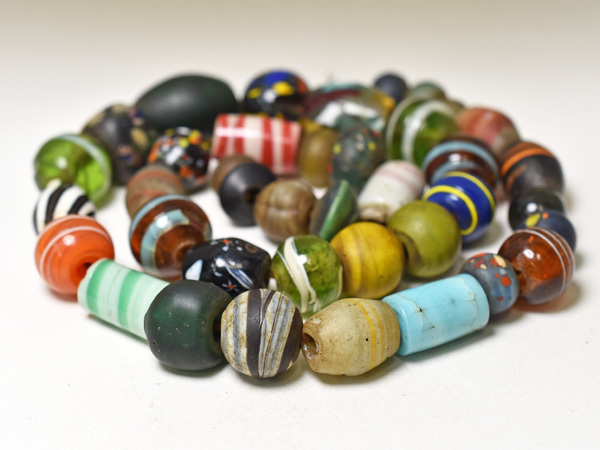 - ●わくわくとんぼ玉★インド製大粒ミックスガラスビーズ一連A4 蜻蛉玉 トンボ玉 【2509】【QB24002A-4】
